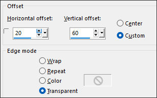 18- Effects / Image Effects / Offset : H: 20 / V: 60 /Custom / Transparent ... Marcado