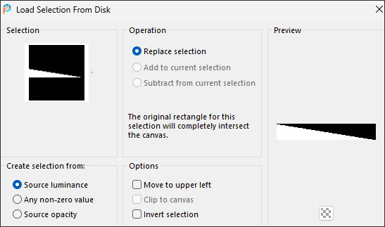 1. Abra uma nova imagem transparente de 900 x 150 pixels.2. Selections / Load save selection / Load selection from disk: sel.asie.nines