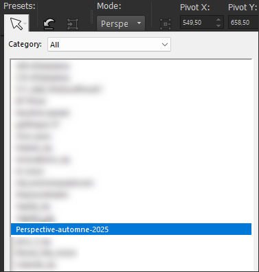 59. Ative a Ferramenta de seleção Pick (K) vá em Presets e selecione «Perspective-automne-2025»