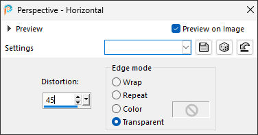 10. Effects /Edge Effects / Enhance More11. Effects / Geometric Effects / Perspective-Horizontal ...( Distortion = 45 / transparent marcado)