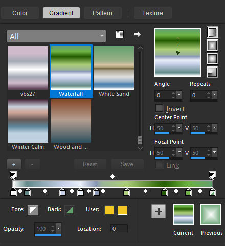 Estilos e Texturas...Primeiro Plano Gradiente «Waterfall» Linear Angle e Repeats 0.