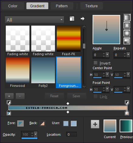 02- Forme um Gradiente no Primeiro Plano, estilo <<LINEAR>> Configurado como segue: