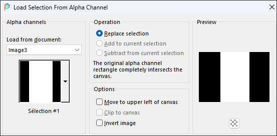 3- Selections / Load save selection / Load selection from alpha channel:Selection#1