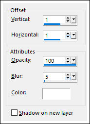9- Effects / 3D Effects / Drop Shadow: 1 / 1 / 100 / 5,00 / Cor do segundo Plano