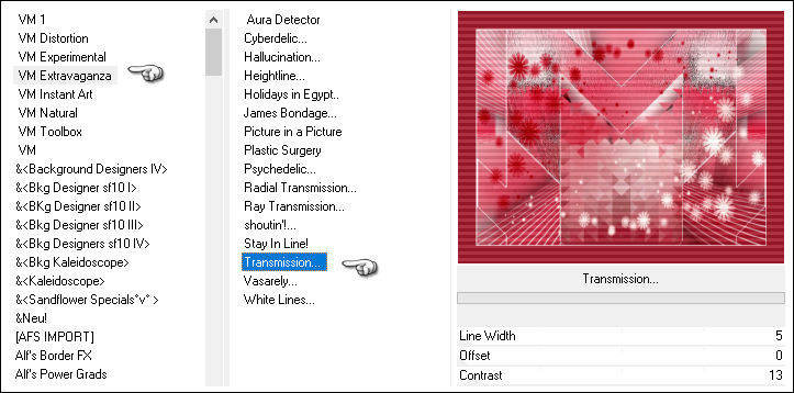 Effects / Plugins / <I.C.NET Software> Filters Unlimited / VM Extravaganza/ Transmission...
