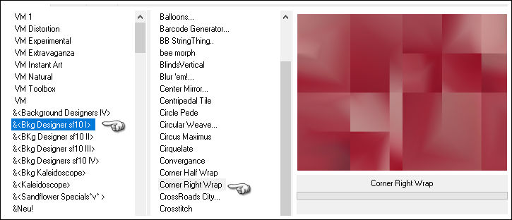 14- Effects / Plugins / <I.C.NET Software> Filters Unlimited 2 / VM Toolbox / Trimosaic... Default