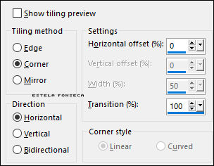Effects / Image Effects / Seamless Tiling: (Corner / Horizontal / 0 / 100)
