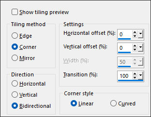 3- Effects / Image Effects / Seamless Tiling: Corner / Bidirectional / Linear / 0 / 0 / 100 .