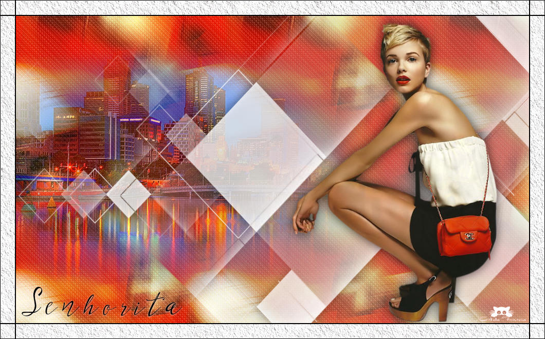 6- Ative o <<Deco-Senhorita>> Copie e Cole como nova layer Effects / 3D Effects / Drop Shadow: