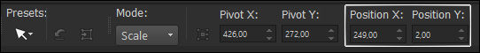 22- Abra o Texto << EF_Rosa_Choque_1>> Copie e cole como nova layer Pick Tool (K) Position X=249,00 / Position Y= 2,00 / Tecla "M" do Teclado desativa a Pick Tool