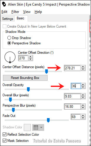 Effects / Plugins / Alien Skin Eye Candy 5 / Impact / Perspective Shadow: Reflect, in Front, Foint
