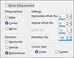03- Effects / Image Effects / Seamless Tiling ... Corner / Bidirectional / Linear / 0 / 0 / 100.
