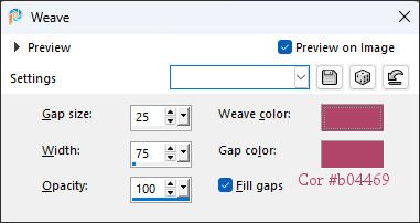 11- Layers / Duplicate Effects / Texture Effects / Weave: 25/75/100 ... cor #b04469