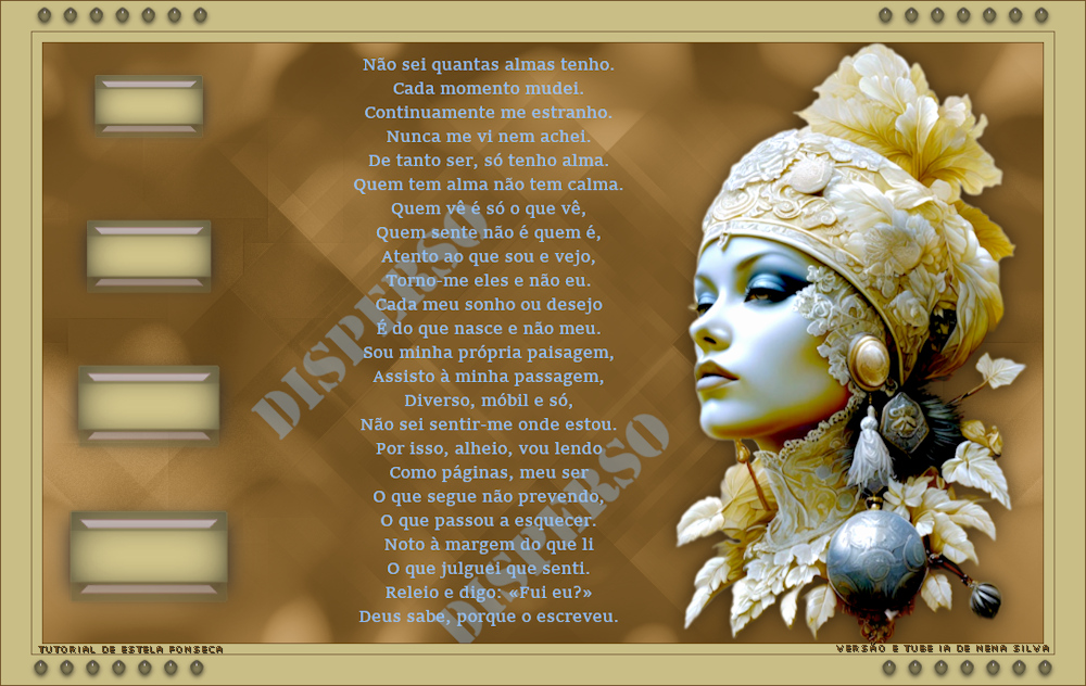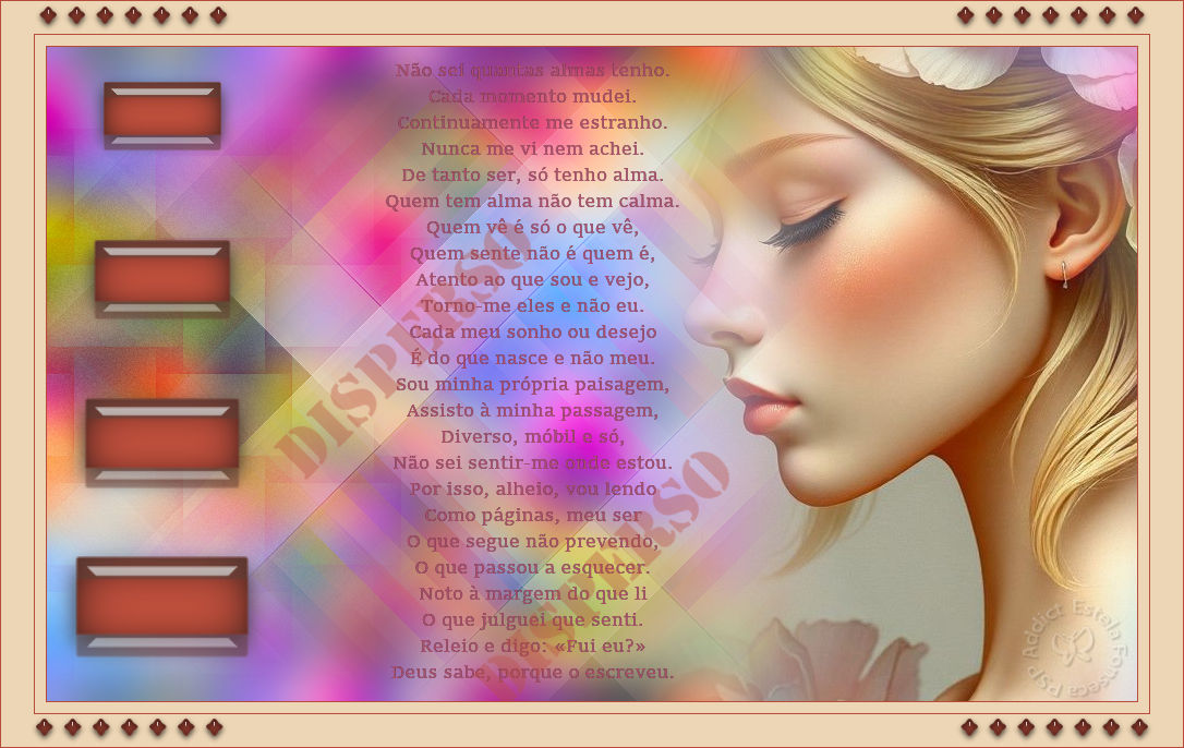 Material Necessário: Tube de LB Tubes Tube Misted de EF (Imagem de Pinterest) Mask 2020 Demais materiais criados especialmente para este trabalho. Poesia de Fernando Pessoa