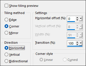 Effects / Image Effects / Seamless Tiling: (corner/Horizontal/0 /100)