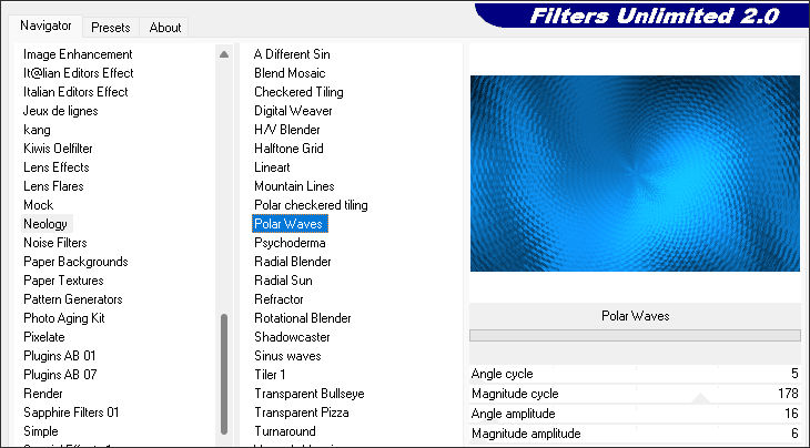 Effects / Plugins / Filters Unlimited 2.0 / Neology / Polar Waves...